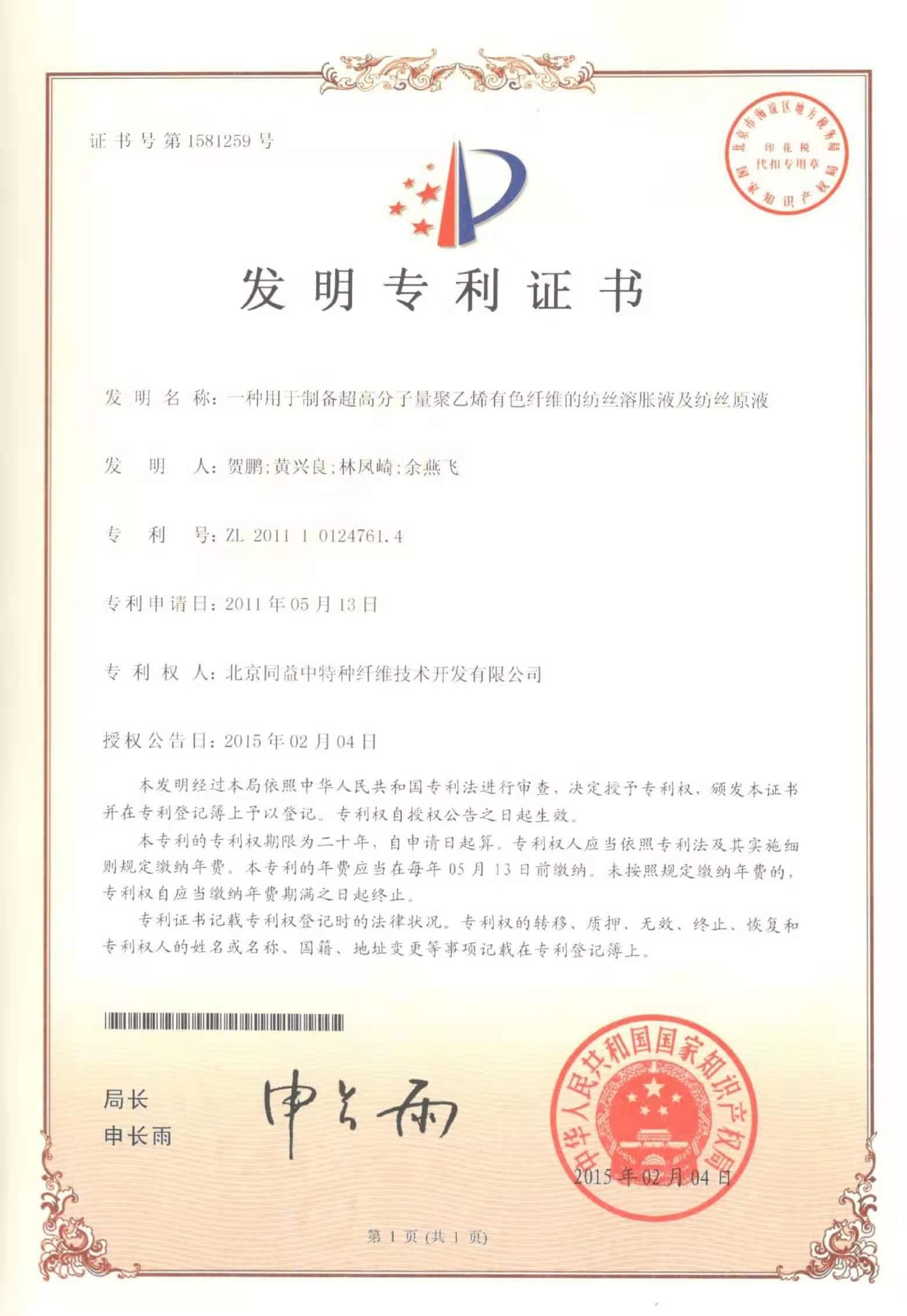 目前,公司員工近918人,是專業從事超高分子量聚乙烯纖維和包括PEUD,芳綸UD和防彈制品的復合材料的研究開發和生產銷售的國家高新技術企業,優秀院士專家工作站,北京市企業技術中心和北京市專利示范單位。