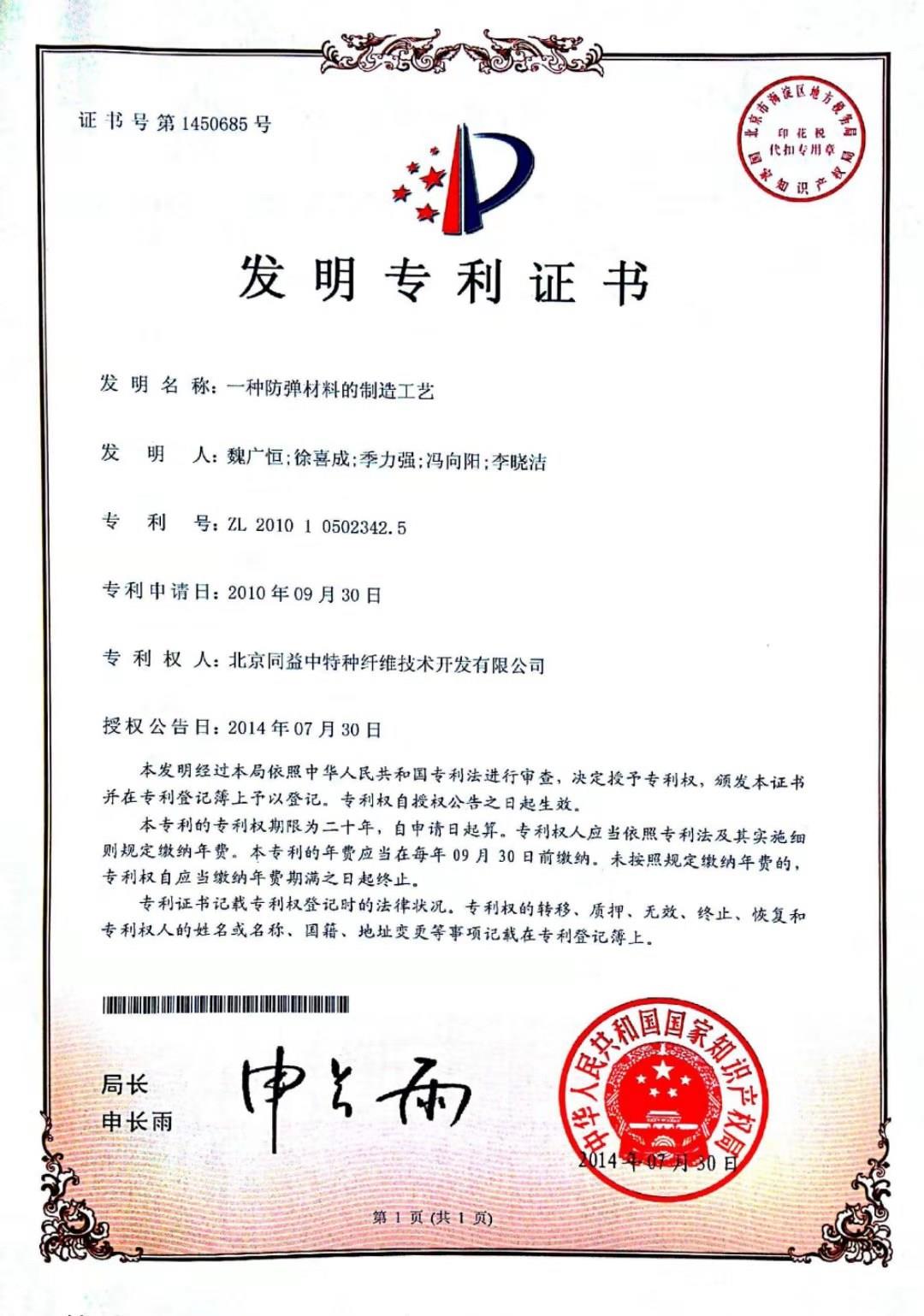 目前,公司員工近918人,是專業從事超高分子量聚乙烯纖維和包括PEUD,芳綸UD和防彈制品的復合材料的研究開發和生產銷售的國家高新技術企業,優秀院士專家工作站,北京市企業技術中心和北京市專利示范單位。