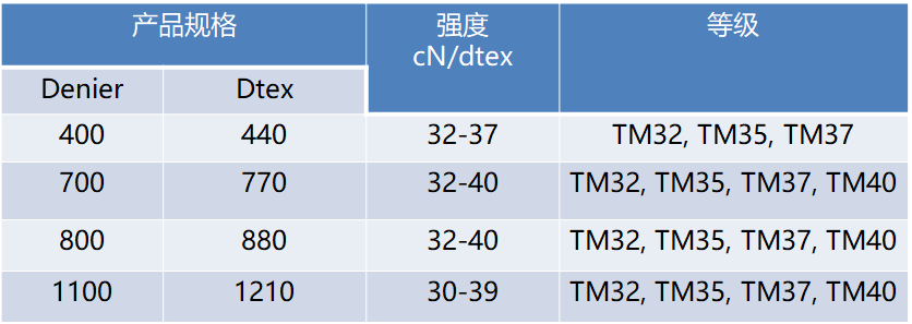 強度最高的同益中TM40 超高分子量聚乙烯纖維的強度可達到40cN/dtex,是優異的防彈纖維材料,目前被用在最輕的防彈衣軟質UD材料中。