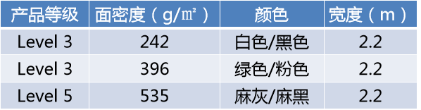 用途面料的主要材質為本公司自主研發生產的專利產品—超高分子量聚乙烯纖維,其具備規格的多樣化。