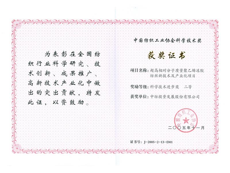 Second prize of Science and Technology Progress by China Textile Industry Association