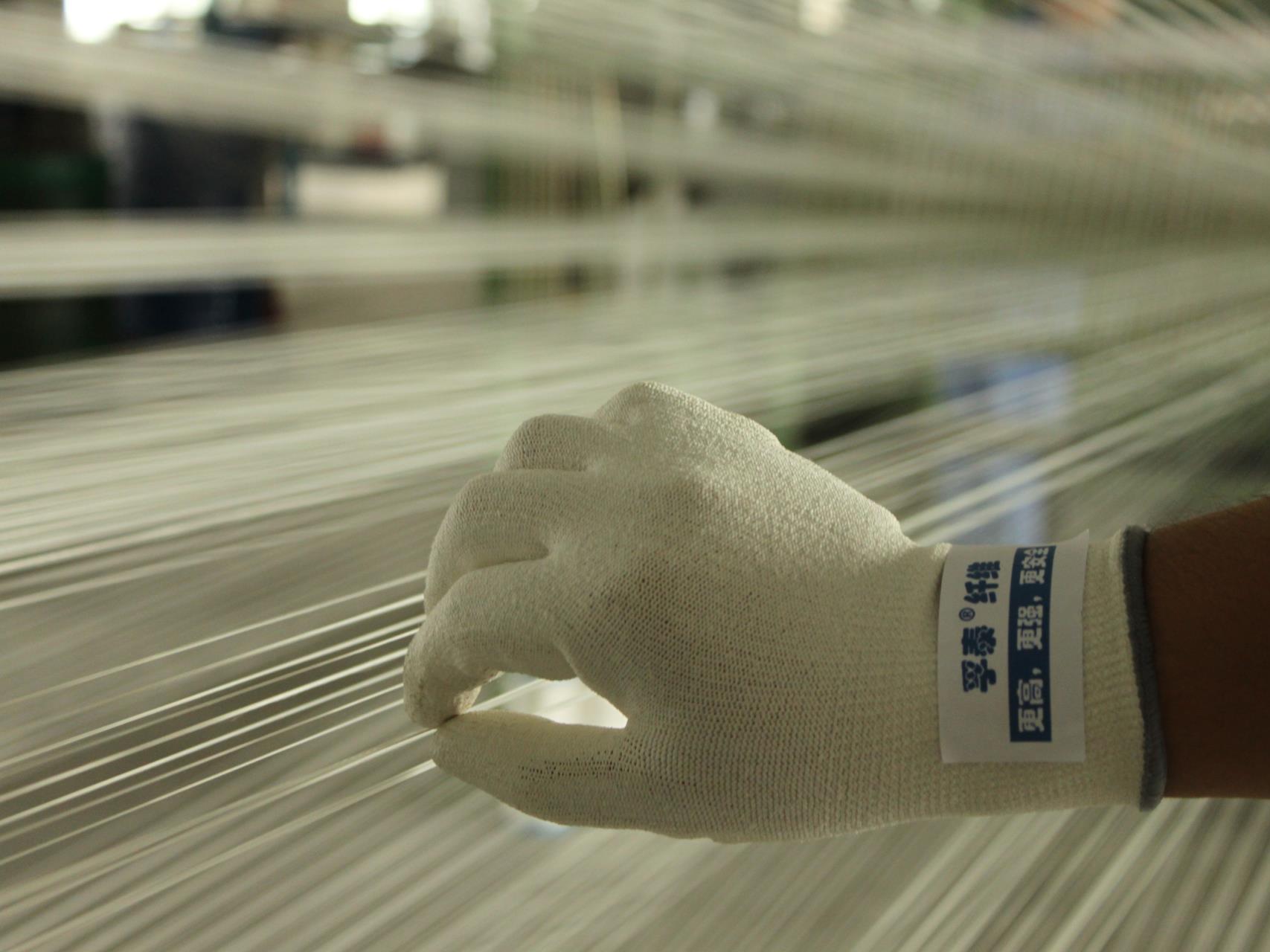 Use TYZ Ultra-High Molecular Weight Polyethylene fiber(UHMWPE/HMPE fiber) as main raw materials, wrap it together with spandex, nylon, polyester, or glass fiber into blending yarns, and finally knit the blending yarns into cut-resistant gloves.