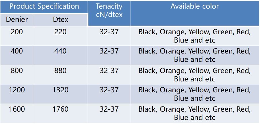 ApplicationsTYZ UHMWPE Fiber of Pre-dyed family has welcomed the industrialization of Black, Orange, Yellow, Green, Red and Blue colors, and has always been updating with customized products as per the requirements and applications of customers. The actual colors of the fiber shall be same as samples approved by both supplier and customers.?