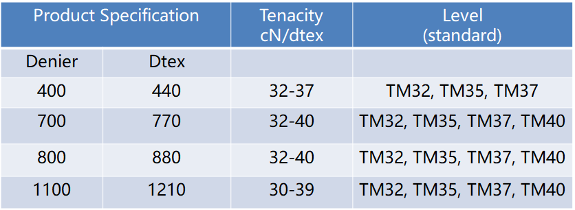 TYZ TM40 UHMWPE fiber with a tenacity of 40 cN/dtex is the excellent fiber as the raw material for ballistic application. It has been used in the lightest UD material of soft body armor.