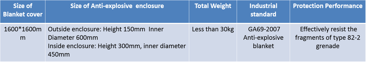 TYZ Explosive-proof Blanket is a blanket-shaped explosion-proof equipment special processed with PE fiber or aramid fiber especially made for ballistic applications.